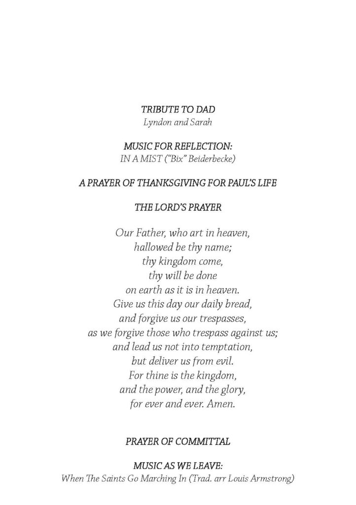 Paul was a deep fount of knowledge, and if he didn’t know the answer to anything, he would always go to the library in search of it. That thirst for knowledge will live forever in the interests he has shared with us all, from jazz and general knowledge quizzes, to local history and conservation. We are all, in that sense, his children.